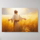 Radiant light bathes the scene in a golden glow, casting Jesus in divine brilliance as He looks heavenward. The ripened wheat reflects the glory of the mission, and the entire canvas is awash with celestial light. Jesus, adorned in white robes, stands as the beacon of hope, calling on His Father to send forth laborers. The harmonious interplay of light and colour transforms the artwork into an ethereal vision, a visual prayer capturing the moment of divine entreaty.