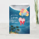 The perfect card for sending love on Valentine's Day or any other day of the year! Depicts a heart with a big red bow, carried away on colourful balloons across a tranquil sea under a bright moon and palm trees below. Blank inside. Great for sending a digital message to family and friends too!