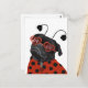 Spread love and joy with this Sending Love With A Cute Love Pug Postcard. The front showcases an adorable illustration of a black pug dressed as a ladybug, complete with a red and black polka dot shirt and heart-shaped sunglasses. This cute love pug is ready to share warm wishes and affection with the recipient.