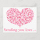 NewParkLane - Postcard, with a heart, filled with a pattern of little hearts in different shades and sizes pink hearts, and quote: 'Sending you love'.
