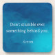 Seneca's wisdom: 'Don't stumble over something behind you.' Stay focused on your future, let go of the past, and embrace personal growth. Ready to move forward with purpose? Bring home this insightful quote today and let it inspire your journey.