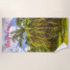 This Beach Towel features an original photograph by ZoeSPEAK of a Senegal date palm, also called reclinata. The beautiful plant spreads out in the sunshine of a Florida sky, with puffy clouds bringing an afternoon shower, making a very relaxing scene. There is optional text reading “Stay Cool”. This is set for you to personalise, or delete if you prefer.