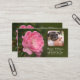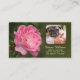 Business card featuring a fresh pink rose on a green background and a photo of your own choice. This business card is set for senior citizens and pet care businesses and can be customised to meet other professional needs.