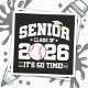 This senior year class of 2026 baseball design is perfect for high school seniors or college graduates. Great for the senior class baseball players celebrating their last school year baseball season before their 2026 graduation! Features "Senior Class of 2026 - It's Go Time!" senior quote in a varsity style athletic font w/ graduation cap & tassel baseball graphic for the proud 2026 senior class baseball player. Great for 2026 senior year baseball games all school year long!
