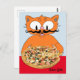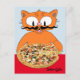 This adorable postcard features mustachioed cartoon cat Señor Gato with a whole deluxe pizza!