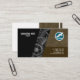 A stunning piece of creative work. In the black column sits your name and job title, Letterings are in white to accentuate your authority. Beside this, is an abstract design of an engine's gear. This follows thru to the next shape where an embedded engine design showcases your logo. Right below this are your contact details in a dark brown shade. The same design theme is applied at the back of the card where in the said area, sits your secondary logo selection. If you are considering uploading your photo, the dimensions are 1,000x1,000 pix. Below this logo are your business details. To add a personal touch, there is a slogan option near the midsection. A simple great card. Preference for use is by engineers or any occupation related to it due to the design format.