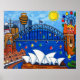 A colourful, unique painting of Sydney, Australia by popular artist Lisa Lorenz depicting all the wonderful highlights of the sensational city of Sydney.