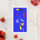 Coloured leaves -navy, orange, light blue, red and yellow-, run along this blue guest towel.