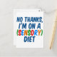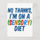 A funny postcard for an occupational therapist who works with people who have sensory processing disorder. No thanks, I'm on a sensory diet.