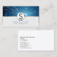 This seo consultant computer circuits monogram business card features a blue hued top comprising abstract computer circuits. Your monogram letter appears in a chrome bordered circle right in the middle of the card. Behind this circle and monogram letter, a thin chrome line runs across the card, separating the top and bottom halves. This design makes for a truly striking business card for those in the computer or technical industry, but is generic enough to be used for any business theme. Customise this card immediately with your name and details.