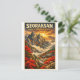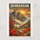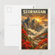 Travel poster featuring Seoraksan Mountain, South Korea, in a classic retro travel-poster style. Central focus on jagged granite peaks rising above misty valleys, autumn maple forests, and hidden mountain temples. Dramatic sunrise light breaks through clouds, highlighting rugged cliffs and vivid seasonal colors. Striking color palette of granite gray, crimson maple, pine green, and golden dawn. Clean graphic illustration with subtle vintage grain texture. Bold vintage typography headline: “SEORAKSAN – CROWN OF KOREAN MOUNTAINS”. Vertical 2:3 layout, high-resolution, print-ready.