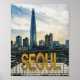 This art print features a watercolor portrait of Seoul, Korea.