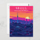 Experience the electric beauty of Seoul with this bold, high-contrast travel postcard. This vibrant sunset illustration captures the city's iconic skyline, from the futuristic Lotte World Tower to the historic hanok rooftops of Bukchon. Bursting with neon pinks, deep blues, and rich purples, this modern art piece channels Seoul’s dynamic fusion of tradition and innovation. A striking addition to any travel art collection