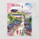 Seoul south Korea Travel watercolor Postcard