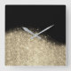 Sepia Faux Gold Black Glitter Grey Minimal Metal Square Wall Clock