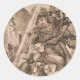 Vintage sepia illustration of an angel fairy looking down on her bird friends and surrounded by flowers. These vintage sepia angel fairy stickers can be customised with added text, like a name or message. Other size angel fairy stickers are available, too. This is a unique gift for anyone that loves fairies, nymphs, angels, or vintage art.