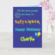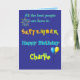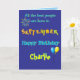 Design is brilliant - there is a male version and a female version of this cartoon and I bought both! You can personalize all the type on this card. I love these cartoon cards from Le Grand Art. I will be coming back to buy more. So pleased with the quality. Great colour and good quality cardstock.