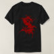 I give wanted to give this a 4 instead of a 5 because these Basic DARK T0shirts run unexpectedly SLIM or Narrow. Which is great if you do not have a potbelly, but I have a paunch. It isn't the shirt's fault that I've got a beer belly. The design and shirt itself is a quality cotton shirt. The color is more of a deep purple, but still a very pretty color. The Basic DARK T-shirts run a bit SLIMMER than the Basic Ts. The neck is a fraction narrower (or seems to be narrower) also. I'm a paunchy middle-aged woman and my neck is 12 inches (31cm) thick and the neckline fell about the same as in the photo of the man, and I had the desire to tug it a bit. So if you're a thick necked man or like loose shirts, be aware these are slimmer shirts. Once I get rid of my lockdown paunch it'll look great. The shirt washed well in cold water with no apparent bleeding. We don't have a dryer, so it hung dry. Did not shrink. Love the colors and the design. The design looks smaller on my shirt than it does on the model on-line. But still, it looks good on the shirt. The printing looks as it does on the model, just the size seems fractionally smaller. Washed garment in cold water, hung dry and design appeared unaffected.