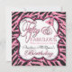 Beautiful glittering faux sequin 50th Birthday Party Invitations with custom glittering pink fonts that say "Fifty and Fabulous" with pink sequin cocktail on a pink and black zebra pattern background. Party info on the back. Need changes, different colours or having problems, just contact me! Hand drawn illustration by McBooboo. Please see my matching products below: