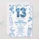 Sequins Blue Bow 13 aesthetic teenager birthday Invitation
