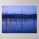 Serene and misty summer lake in Finland after heavy rain storm in late evening during a blue hour.