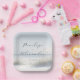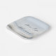 This wedding plate features a serene beach scene with soft, muted colors that create a calming and romantic atmosphere. The design includes gentle ocean waves under an overcast sky, framed by tall grasses in the foreground, all rendered in pastel blues, whites, and grays. Elegant script typography is centered on the plate, allowing for customizable names and dates, enhancing its personal touch. Perfect for intimate celebrations, this plate captures the essence of a peaceful seaside moment, making it ideal for weddings or special occasions by the shore.