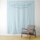 This wedding backdrop features a minimalist and elegant design with a soft pastel blue background, creating a serene and harmonious atmosphere. The phrase "just married" is elegantly written in flowing cursive script at the top, while clean sans-serif typography highlights the names below. The overall style is contemporary with classic charm, utilising negative space to emphasise clarity and sophistication. Perfect for celebrating your special day, this design conveys tranquillity and joy through its understated elegance.