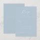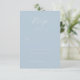 This elegant wedding RSVP card features a minimalist design with a soft pastel blue background and crisp white text. The layout is centered, creating a balanced and harmonious appearance, perfect for formal occasions. With clean sans-serif fonts and an elegant cursive script for emphasis, the card exudes sophistication and clarity. Its serene and inviting mood makes it ideal for capturing guests' responses with grace and simplicity.