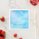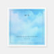 This wedding napkin design features a serene watercolor background with soft blue hues, creating an airy and tranquil atmosphere. The layout is centred and balanced, showcasing elegant serif typography for the initials "M" and "K," along with names and date in a sophisticated style. Gentle cloud-like shapes blend seamlessly into the backdrop, enhancing the dreamy aesthetic. Perfect for adding a touch of elegance to your special day, this design captures the essence of peace and celebration.