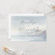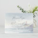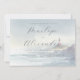 This wedding invitation features a serene watercolor design with soft pastel hues of blue and green, creating an oceanic landscape. A charming lighthouse illustration stands against gentle waves and rocky cliffs, evoking a coastal tranquillity. The elegant script typography highlights the names "Penelope" and "Alexander," while clean serif fonts provide details about the event. The overall mood is romantic and peaceful, perfect for celebrating a seaside wedding. Customisable text allows personalisation for your special day.