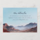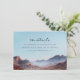 This wedding enclosure card features a serene landscape with mountains and a valley, creating a tranquil and inviting atmosphere. The design uses soft blues for the sky and earthy tones for the mountains, rendered in an impressionistic watercolor style that emphasizes fluidity and blending of colors. Elegant script and serif fonts highlight the main heading "the details," while ample negative space ensures clarity and focus on the natural scenery. Perfect for conveying essential information, this card combines artistic beauty with functional purpose, ideal for weddings seeking a peaceful and sophisticated aesthetic.