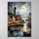 Serene Coastal Village at Dusk Nautical Harbour Ar Poster