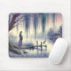 Serene Fantasy Lake with Willow and Heron Mouse Mat