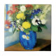 Serene Flower Vase Artwork. Enhance your space with this serene stylised watercolour still life vase of flowers. Delicate blues, yellows, and reds add a calming touch to any room.