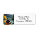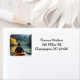 Kayaking themed return address labels. AI Art depicting a serene scene with a man kayaking in the mountains.