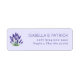 These return address labels feature a serene lavender illustration paired with elegant, centred text on a soft purple background. The design combines a classic serif font with a nature-inspired theme, creating a sophisticated and calming aesthetic perfect for personal correspondence. The minimalist colour palette of purples and greens enhances the tranquil mood, making these labels ideal for those who appreciate understated elegance in their stationery.