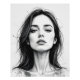 A loosely sketched full head-and-shoulders portrait of a person looking straight ahead. Delicate, flowing linework combines harmoniously with soft gray ink washes and controlled splatter, creating a balanced and serene tone. The artwork exudes calmness and subtle elegance through its gentle contrast and fluid composition.