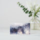 This design offers a serene and ethereal style business card for a meditation instructor, with soft muted watercolor blue violet hues, and trees in a misty forest with clouds, and birds flying. Available in print, as a digital download, or both.
