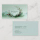Define your brand with tranquil serenity and ethereal beauty using this captivating business card. The design centers on a breathtaking Asian-inspired landscape painting, where sharp, misty mountains and trees emerge from a hazy, pale sage green fog. The foreground is dominated by a still, reflective lake or body of water. The scene is beautifully accented by a dramatic crescent-shaped floral arrangement, showcasing abundant, delicate pale pink roses and lush green vines that arc over the water. This artwork beautifully captures the quiet solitude of a hidden Zen garden, resulting in a unique and sophisticated brand statement that conveys peace and natural elegance. This business card is ideally suited for a spiritual advisor or wellness coach emphasizing calm and nature, a boutique travel agency promoting Asian-inspired scenic retreats, or a fine art print seller specializing in serene, atmospheric works. It would also perfectly suit a landscape architect whose focus is on peaceful, artistic garden designs, or a tea room proprietor looking to convey a refined, peaceful experience.