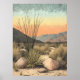 The tranquil beauty of the Mojave Desert with this stunning art print. Capturing the serene moment of sunrise, this piece features the iconic desert landscape with delicate yucca plants and ocotillo branches standing tall amidst rocky terrain. The soft gradient of warm oranges and cool blues in the sky contrasts beautifully with the rugged mountains in the background, evoking a sense of peace and solitude. Perfect for nature lovers and those who appreciate the understated beauty of desert landscapes, this print brings the quiet majesty of the California desert into your home.