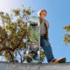 This stunning image captures a serene mountain landscape featuring a cascading waterfall flowing through a rocky terrain. The lush green forest, dotted with trees displaying autumn hues, creates a vibrant contrast against the clear blue sky. The scene is framed by majestic mountains in the background, adding depth and grandeur to the composition. This picturesque setting is perfect for nature enthusiasts and those seeking tranquillity and inspiration from the great outdoors.