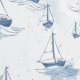 Watercolor pattern in soft navy blue white tones featuring sailboats, most calming and tranquil design for for coastal decor in the kid's room, bedroom, bathroom, beach house, holiday home.. Small and large pattern size available.