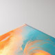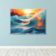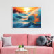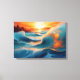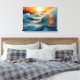 A calming semi-abstract depiction of ocean waves crashing at sunrise, showcasing deep blues, teal, and soft orange hues. This serene artwork evokes a sense of peace and tranquillity for coastal lovers.