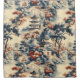 This artwork depicts an idyllic scene of traditional Asian pagodas nestled among vibrant trees and misty mountains. The colour palette blends soft blues, rich oranges, and creams, giving the image a tranquil, dreamlike quality. Flowing waterfalls and delicate foliage add to the serenity, evoking a sense of harmony with nature.