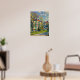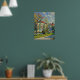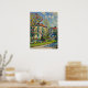 This vibrant wall art captures a serene park on a beautiful spring day. With trees blossoming in shades of green, yellow, and white, the scene is framed by a charming, elegant house in the background. People casually enjoy the day, strolling along sunlit paths or sitting on benches amidst blooming bushes of pink and red flowers. The clear blue sky adds a sense of warmth and calm, making this piece perfect for bringing a sense of relaxation and nature’s beauty into any room