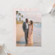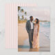 This invitation features a romantic beach scene with two individuals standing close together on the sandy shore, capturing an intimate moment. The design uses soft pastels and warm tones, including light beige sand, gentle blue-green ocean hues, and muted green palm trees, creating a serene and tranquil atmosphere. The realistic photographic style emphasizes natural beauty, with fine details like the texture of the sand and movement of the water. Perfect for weddings or special occasions by the sea, this design evokes a peaceful and idyllic mood, inviting guests into a moment of quiet connection with nature.