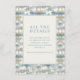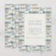 This wedding enclosure card features a modern, minimalist design with a central white square framed by abstract shapes in soft pastel colours like light blue, beige, and muted yellow. The digital illustration style creates a textured, pixelated effect that blends contemporary aesthetics with retro vibes. Elegant serif fonts are used for the text, which is centred and easy to read, providing information about accommodations and directing guests to a customisable website link. The overall mood is professional yet inviting, making it perfect for conveying essential details while maintaining an organised and visually pleasing look.