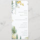 This elegant wedding menu features a vertical layout with a harmonious blend of floral and botanical elements, creating a serene and sophisticated atmosphere. The design showcases soft pastel colours like pale yellow, muted greens, and subtle blues, enhanced by watercolor illustrations that add a delicate touch. Typography is refined, with cursive script for the word "menu" and clean sans-serif fonts for clear readability, while ample spacing ensures a structured appearance. Perfect for couples seeking an organic and tranquil aesthetic, this menu captures the essence of nature and freshness, making it ideal for any romantic celebration.