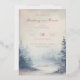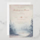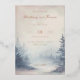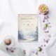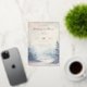 This elegant wedding invitation features a vertical layout with a soft, pastel color palette of pink and blue hues. The design showcases a watercolor illustration of a misty forest scene, creating a serene and ethereal atmosphere. The typography combines flowing script and bold serif fonts, enhancing the classic and romantic aesthetic. Customizable elements allow for personalization, making it perfect for couples seeking a tranquil and sophisticated look for their special day.