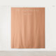 This wedding backdrop features a minimalist design with a warm peach-coloured background, creating an inviting and serene atmosphere. The layout is clean and balanced, showcasing elegant cursive typography for the main title paired with simple sans-serif font for additional details. Its modern and understated style emphasises sophistication through simplicity, making it perfect for couples seeking a refined and personalised touch for their special day. The absence of complex patterns allows the focus to remain on the typographic elements, enhancing the overall mood of calmness and anticipation.